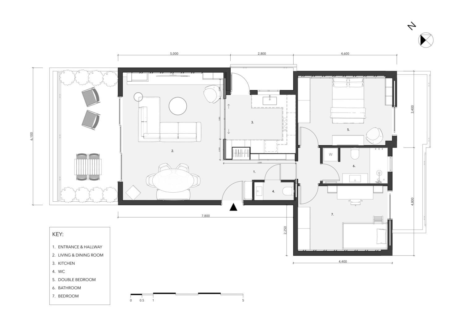 Το έργο αφορά την ανακαίνιση ενός διαμερίσματος 82 τ.μ., το οποίο βρίσκεται στον τρίτο όροφο πολυκατοικίας κατασκευής της δεκαετίας του 1990, στη Μελίσσια, στα βόρεια προάστια της Αθήνας. Η αρχική κάτοψη περιλάμβανε έναν ενιαίο χώρο καθιστικού και τραπεζαρίας με θέα προς τον μπροστινό κήπο, δύο υπνοδωμάτια στο πίσω μέρος του διαμερίσματος, καθώς και την κουζίνα και ένα WC στη μεση της κάτοψης.